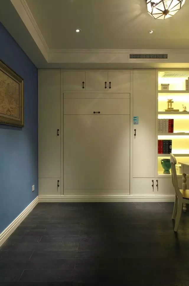 這樣的壁柜比傳統(tǒng)的小格子博古架更加吸引人,一種大氣、高雅的感覺(jué)在看到這里時(shí)油然而生。