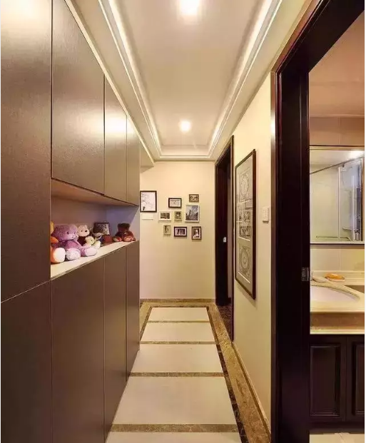 除了裝飾作用之外,走廊最重要是發(fā)揮實(shí)用性。其中,最常見(jiàn)的作用就是收納。無(wú)論是鞋子、衣物、書(shū)籍等,只有你想不到,沒(méi)有走廊收納做不到的。