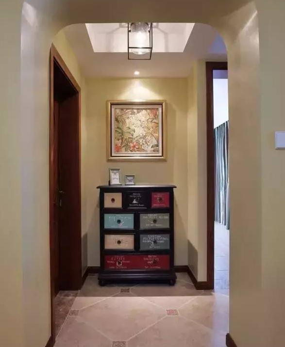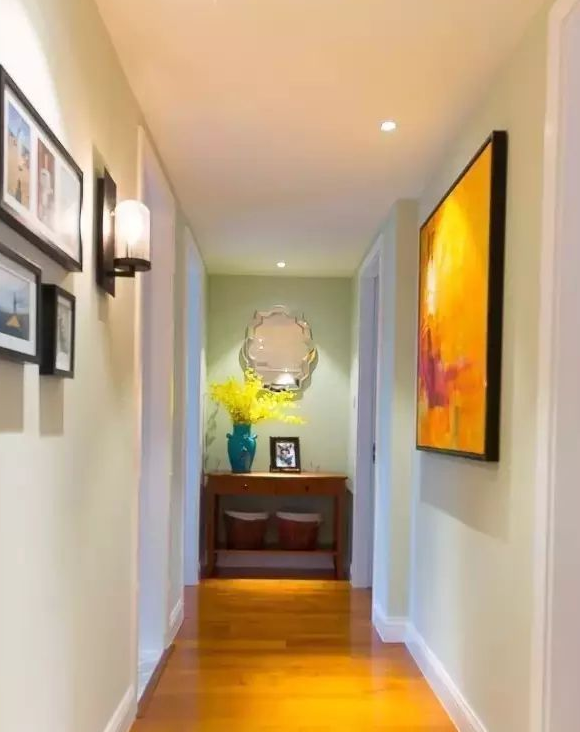 也可以選擇掛上一些自己喜歡的藝術(shù)畫(huà)布置走廊墻壁。配合燈光作用,走廊也能變成家里的一道亮麗的風(fēng)景。