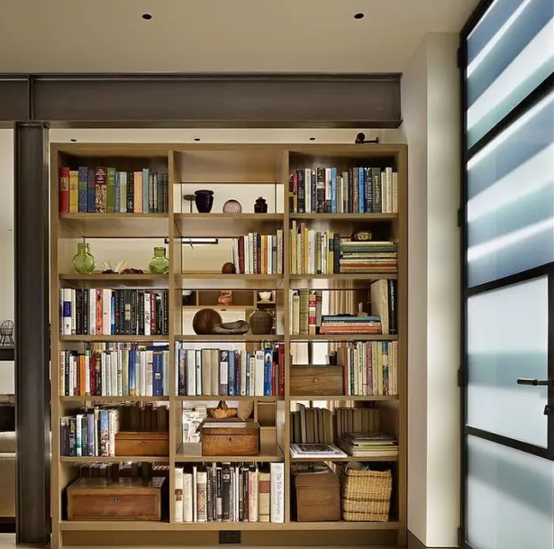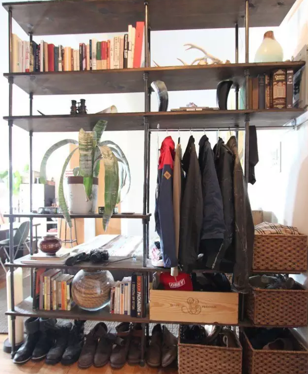 書架作為隔斷是我們多次提倡過的,擺到玄關(guān)處也未嘗不可。