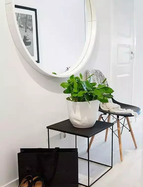 ▲鏡子絕對(duì)是玄關(guān)的標(biāo)配,出門前整理衣裝,美美噠出門~還能起到放大空間的效果。
