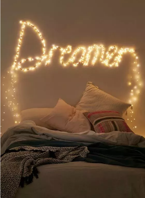 用串燈裝飾房間端端已經(jīng)介紹過很多次啦,用星星燈在床頭固定出一個(gè)具體的形狀來做裝飾,或者干脆做個(gè)照片墻效果也不錯(cuò)。