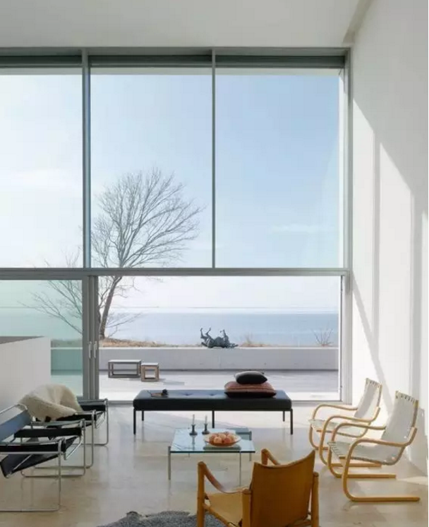 大面積的固定窗也很受歡迎,很好的取到室外的美景,它不僅采光好,而且密封、隔熱性較好,但是不能開(kāi)啟,只能用在家里的某一部分,因?yàn)樗荒荛_(kāi)窗換氣。