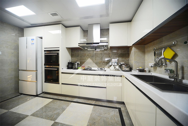 ▲在廚房裝修的時候最好選擇一些好拆卸好清洗的頂板,中國人做菜最喜歡的就是煎炒烹炸,整體煙熏火燎,就算有抽油煙機,等時間長了,也會給頂面沾上一些油污,這樣也不用擔心臟亂差的問題。