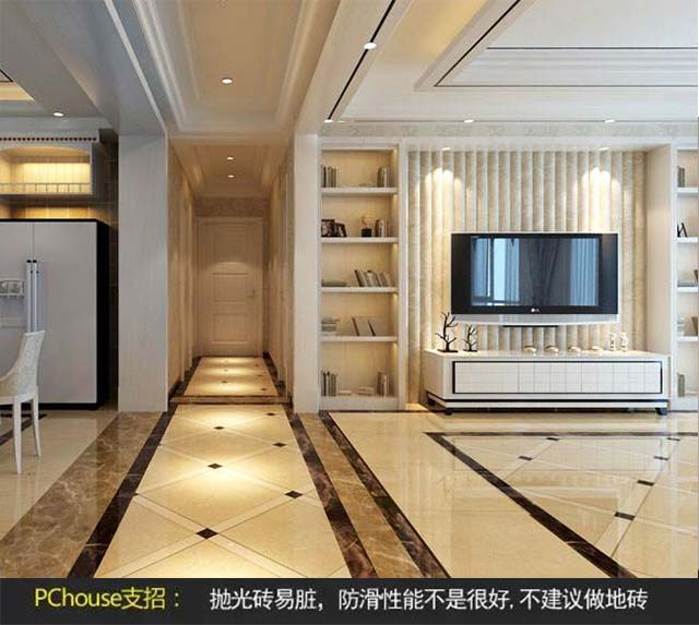 PS:如果使用了拋光磚,平時(shí)家中盡量開小燈,還要避免燈光直射或通過(guò)反射影響到眼睛;由于白色和金屬色瓷磚反光較為強(qiáng)烈,不適合大面積在居室使用。
