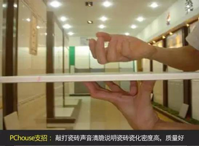 敲打瓷磚,聽聲辨密度。選擇瓷磚最重要的是考慮質(zhì)量問(wèn)題,辨別瓷磚好壞有很多標(biāo)準(zhǔn),可以進(jìn)行敲打,聲音清脆說(shuō)明瓷磚瓷化密度高,質(zhì)量好。