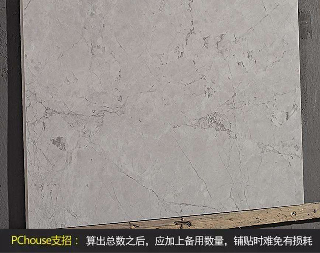 瓷磚可以論塊出售,或者按平方米出售,在購(gòu)買瓷磚前應(yīng)計(jì)算要鋪貼的面積。有的圖表只要知道貼瓷磚墻面的高度和寬度,即可查出瓷磚用量。有的瓷磚包裝箱上也會(huì)列明一箱瓷磚可鋪貼多大面積。粗略計(jì)算起來(lái),80平方米的面積可按640塊約14厘米見方的瓷磚或320塊20厘米見方的瓷磚計(jì)算。算出總數(shù)之后,應(yīng)加上一定的備用數(shù)量,因?yàn)殇佡N時(shí)難免有損耗。也可以利用這個(gè)公式大致算出所需要的瓷磚量:(裝飾面積÷每塊瓷磚面積)×(1+3%),就是施工時(shí)所需瓷磚塊數(shù),其中3%是施工損耗量。