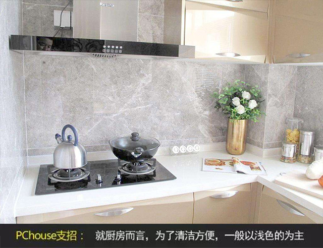 比如廚房一般來(lái)說(shuō),為了清潔方便,一般以淺色的為主,最常見的白色的瓷磚。