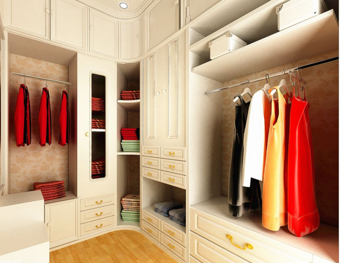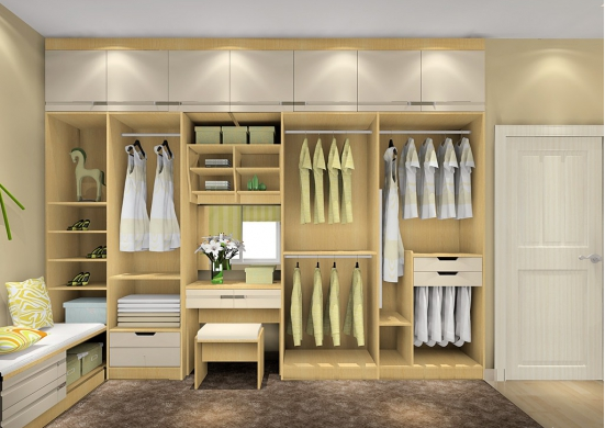 如果有這個(gè)條件,也可以像效果圖里一樣,設(shè)計(jì)一個(gè)小小的衣帽間,尋找于一片自己的小天地。