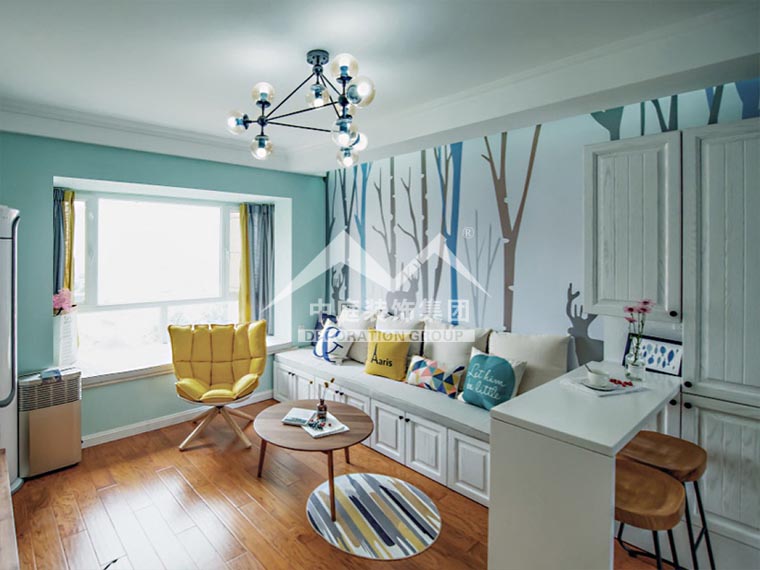 1、盡量使用清新一點的墻漆進行補色,天藍、亮黃都是不錯的選擇。