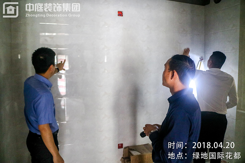 墻磚鋪貼四角沒有對(duì)平,現(xiàn)場(chǎng)砸無赦,并對(duì)項(xiàng)目經(jīng)理及監(jiān)理且相關(guān)部門經(jīng)理進(jìn)行處罰,責(zé)令整改。