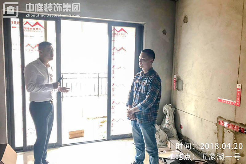 集團(tuán)總裁丁總與剛好來現(xiàn)場(chǎng)的業(yè)主進(jìn)行交談,業(yè)主對(duì)公司服務(wù)特別滿意,他說到,他平時(shí)只有周六周日休息時(shí)才會(huì)來工地,公司的6大管家都會(huì)把每個(gè)流程在微信服務(wù)群上進(jìn)行匯報(bào),很放心省心。