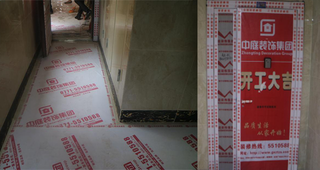 施工前電梯口過道保護及入戶門保護,目的是為了保護公共區(qū)域里的公共設施,能有效避免裝修過程中由于意外所造成不必要的困擾和糾紛。