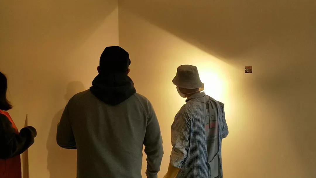 強(qiáng)光手電筒檢查陰角施工是否垂直平整