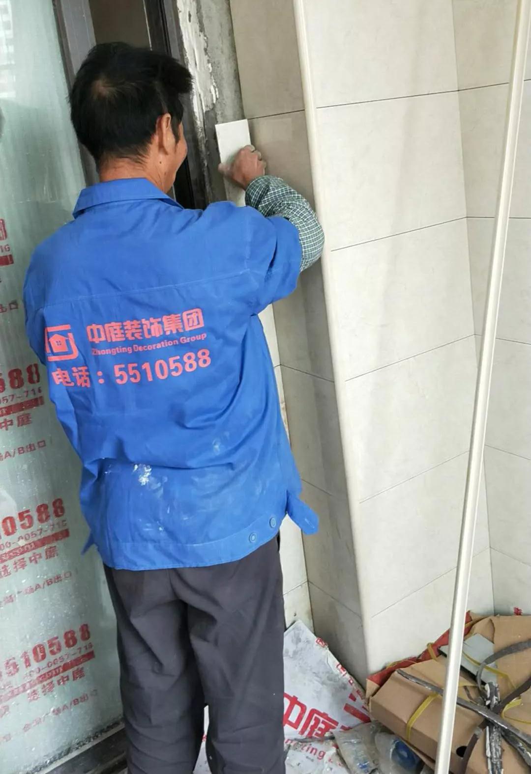 現(xiàn)場(chǎng)檢查是否按圖施工,檢查墻面鋪磚平整度