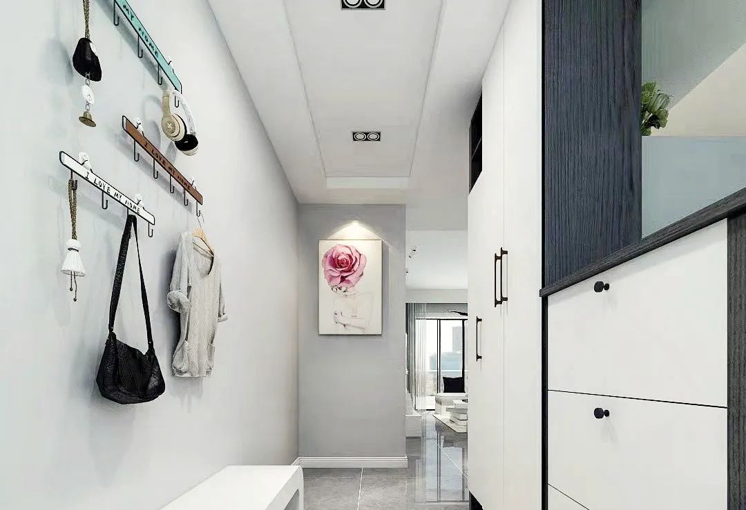 掛鉤相信大家都不陌生,它是我們家庭收納的好幫手。在玄關(guān)區(qū)域,可以在走道兩端的墻面上安置掛鉤,這樣我們?cè)诖蜷_家門的第一刻,便可把包包、帽子等飾品安放好,此時(shí)解脫的不僅僅是我們的雙手,更是生活的壓力與負(fù)擔(dān)。