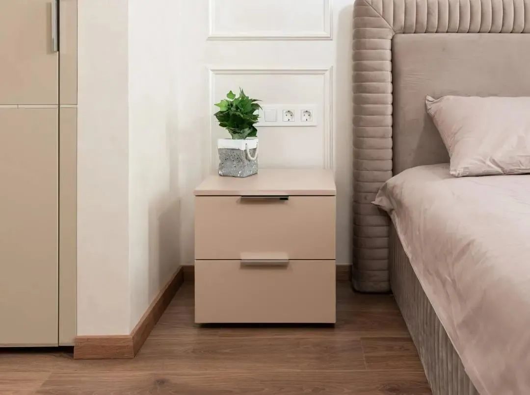 開始進入正題!美觀,實用,總有小伙伴在兩者之間猶豫不決。例如床邊的插頭,千萬不要讓床頭柜遮擋住了。無論是因為想省錢還是美觀問題,在床的位置確定以后,一定要把兩邊床頭柜的插座移到床頭柜之上。