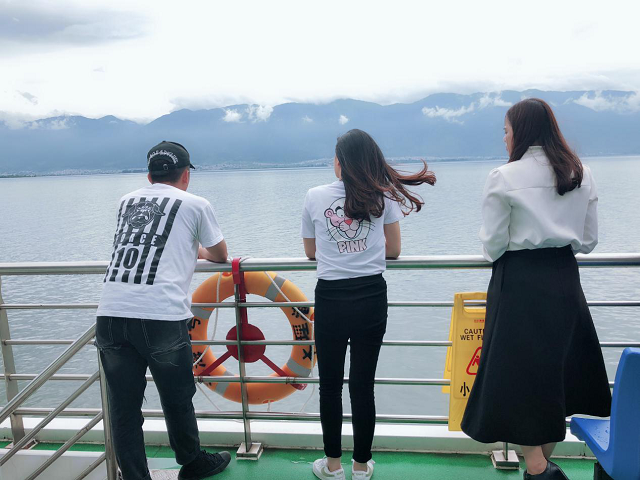 途中??吭谟小按罄盹L(fēng)光在蒼洱、蒼洱風(fēng)光在雙廊”之稱的南詔風(fēng)情島,登島的家人們盡情享受著南詔國的風(fēng)光。