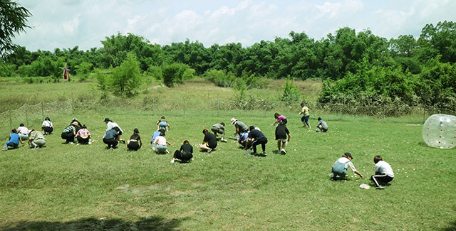 在草坪上捉雞和撿雞蛋的比賽,需要隊(duì)員之間相互合作,相互協(xié)調(diào),相互幫助,才可以快速完成任務(wù),贏得比賽。同時也增強(qiáng)了各部門、同事與同事之間的密切溝通交流,有利于提高團(tuán)隊(duì)的凝聚力。