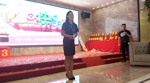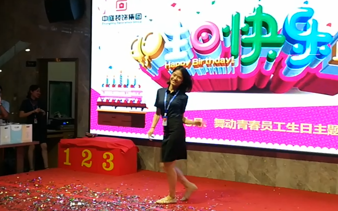 在生日會(huì)開(kāi)始前,主持人與大家互動(dòng)發(fā)一小部分禮物,部分員工給大家準(zhǔn)備了三個(gè)小游戲,還給大家做了精彩的表演,并且贏得了陣陣掌聲。