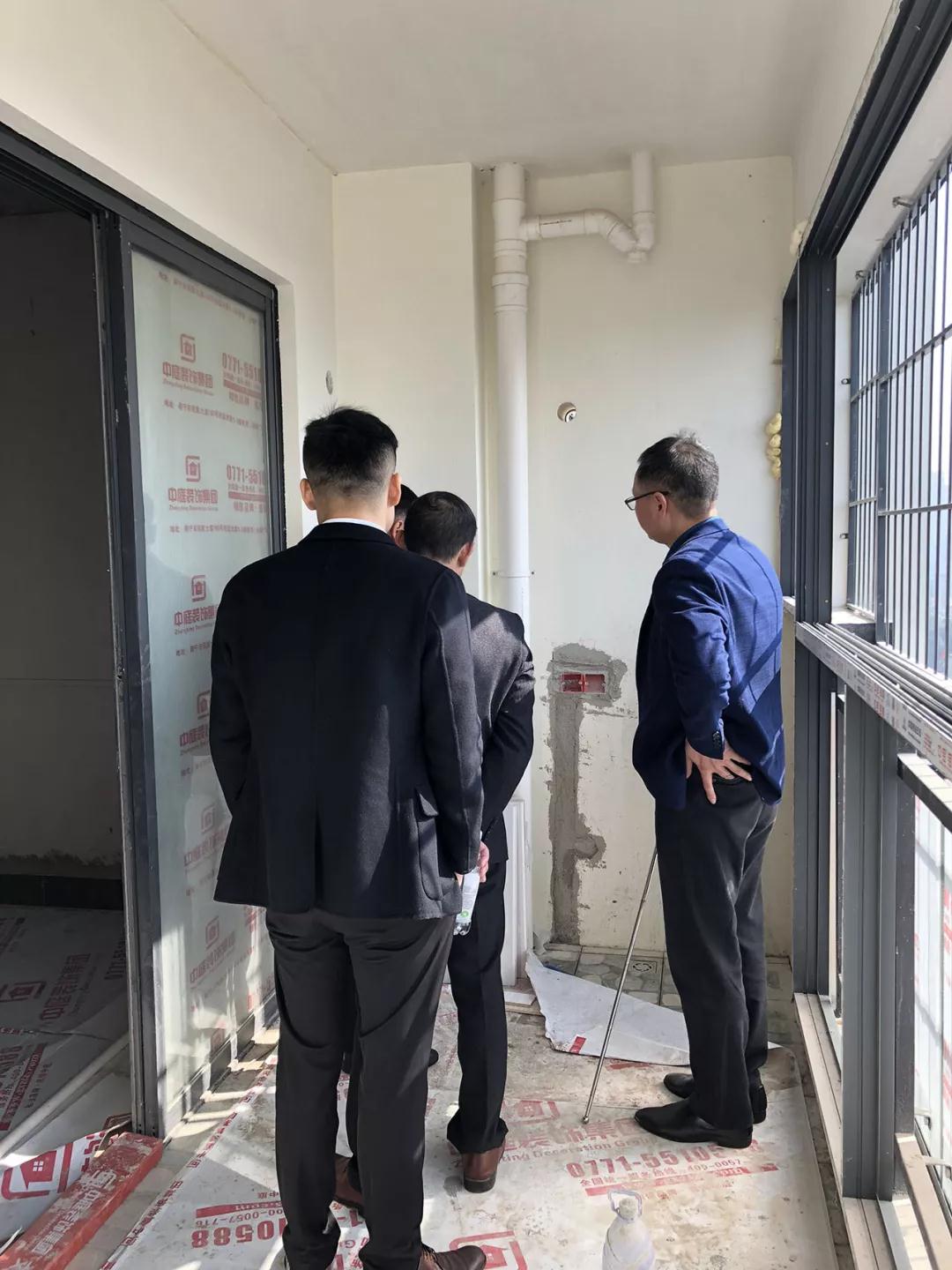 在參觀完中庭裝飾集團(tuán)展示廳及樣板房后,丁總及集團(tuán)領(lǐng)導(dǎo)陪同洪斯君先生一起來(lái)到了新民宿舍的工地,現(xiàn)場(chǎng)進(jìn)行巡查和指導(dǎo)工作。
