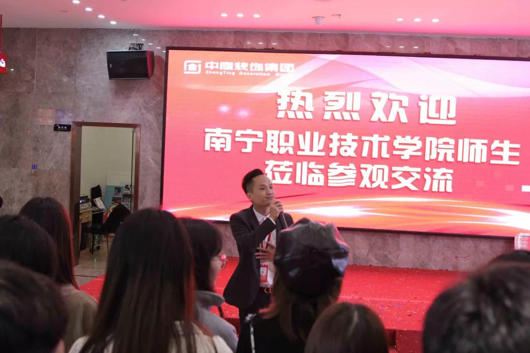 中庭裝飾集團歡迎更多的南寧本地院校組織學生到我司進行參觀交流。通過建立校企合作平臺,在學校與企業(yè)之間建立紐帶,給學生們提供更多的社會實踐的機會,提高學生的學習和工作能力,培養(yǎng)實用性人才。