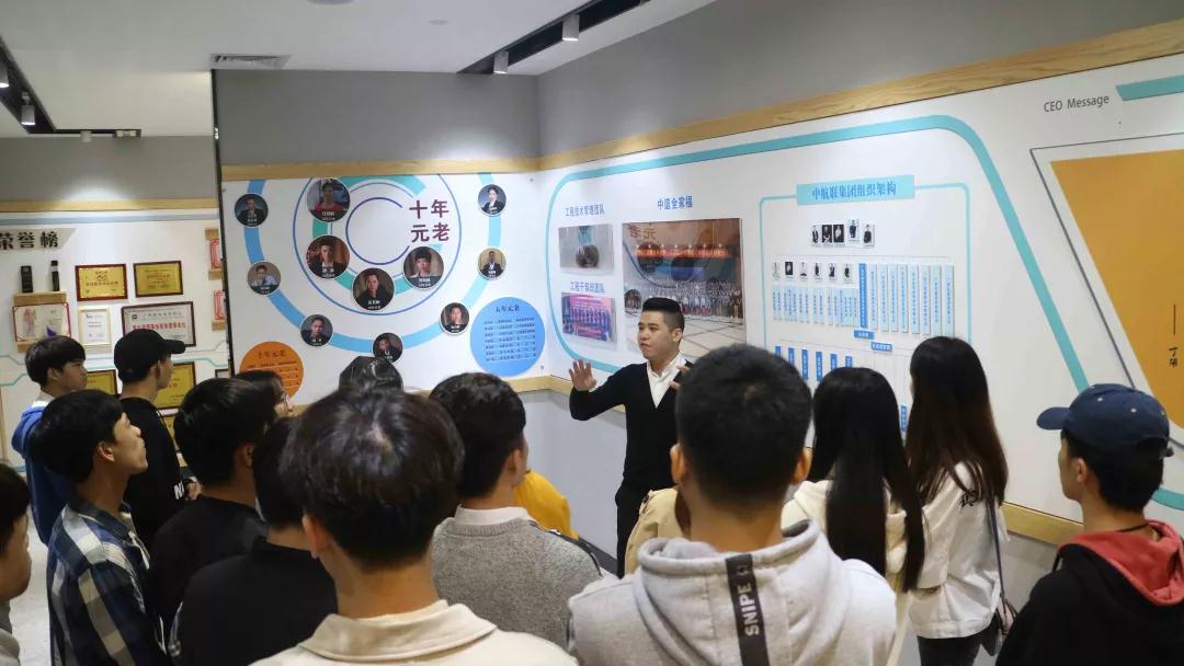 張總帶領(lǐng)學生參觀中庭裝飾集團文化長廊,給同學們介紹了關(guān)于中庭裝飾集團組織架構(gòu),企業(yè)愿景、使命、價值觀以及人文關(guān)懷,愛心公益等方面的企業(yè)文化。
