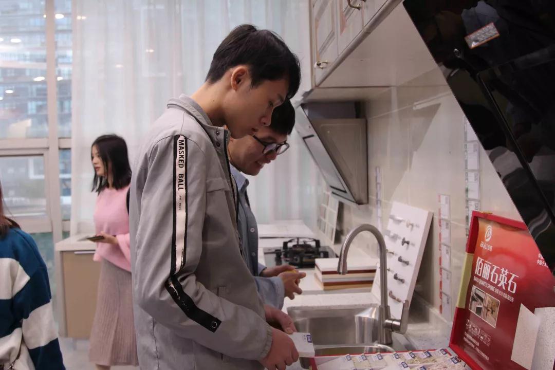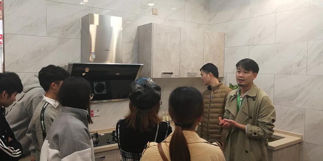 在廚房展示區(qū),設(shè)計部經(jīng)理韋昌豪和學生分享:“如果同學們今后決心要成為一名設(shè)計師,現(xiàn)在開始就要關(guān)注一些基礎(chǔ)的設(shè)計上的問題,對廚房的配置多做基礎(chǔ)的了解,平時也可以自己拿尺子量一些門、窗的尺寸。設(shè)計源于生活,設(shè)計師做出的設(shè)計也要根據(jù)現(xiàn)實生活來落地?!?