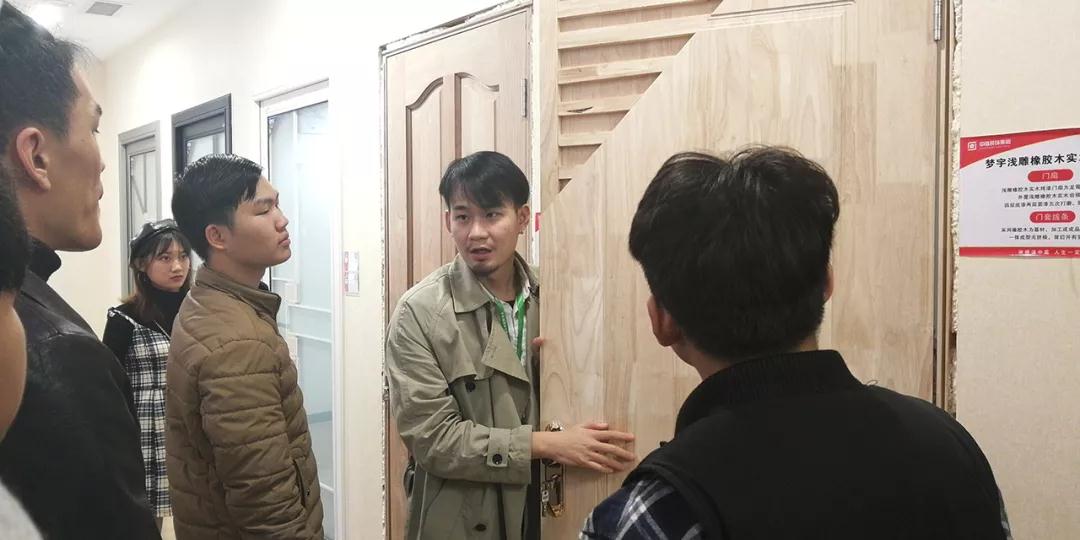 材料展示區(qū)由運營部總經(jīng)理楊總和設(shè)計部經(jīng)理韋昌豪帶領(lǐng)學生參觀。