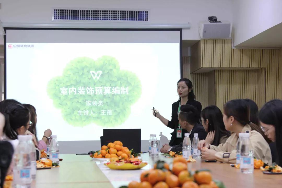 我們請到了預(yù)決算部經(jīng)理王蓓來給學生們講解室內(nèi)裝潢的預(yù)算組成部分。