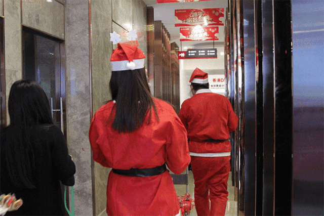 圣誕老人們齊聚在中庭裝飾集團(tuán)