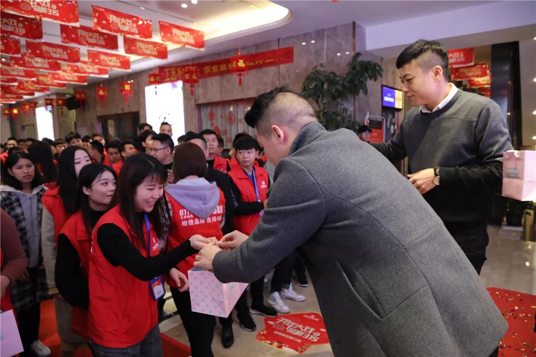 ▲集團(tuán)總裁丁總給中庭女神送上節(jié)日禮物