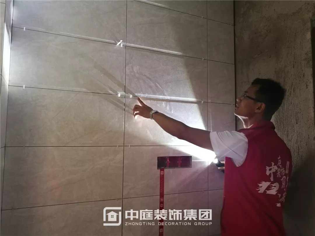 檢查瓷磚鋪貼是否平整干凈,有無錯(cuò)貼漏貼