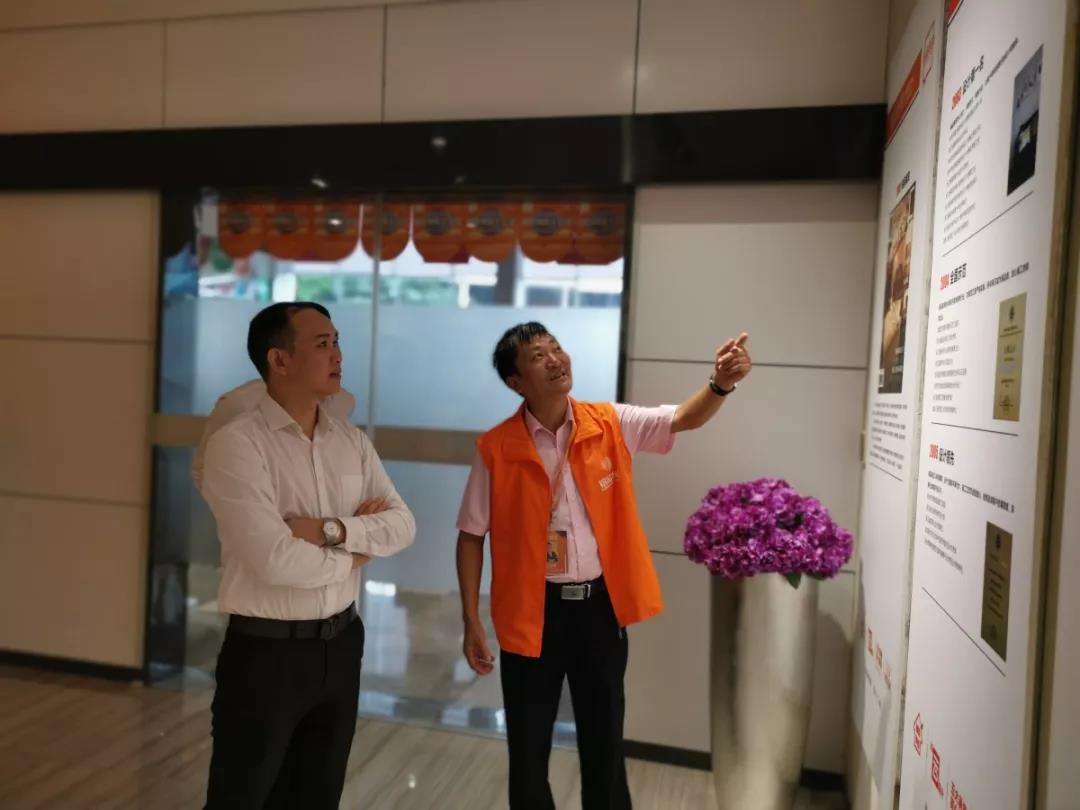 ▲大區(qū)經(jīng)理應(yīng)立強應(yīng)總向吳總一行人解讀公司文化墻