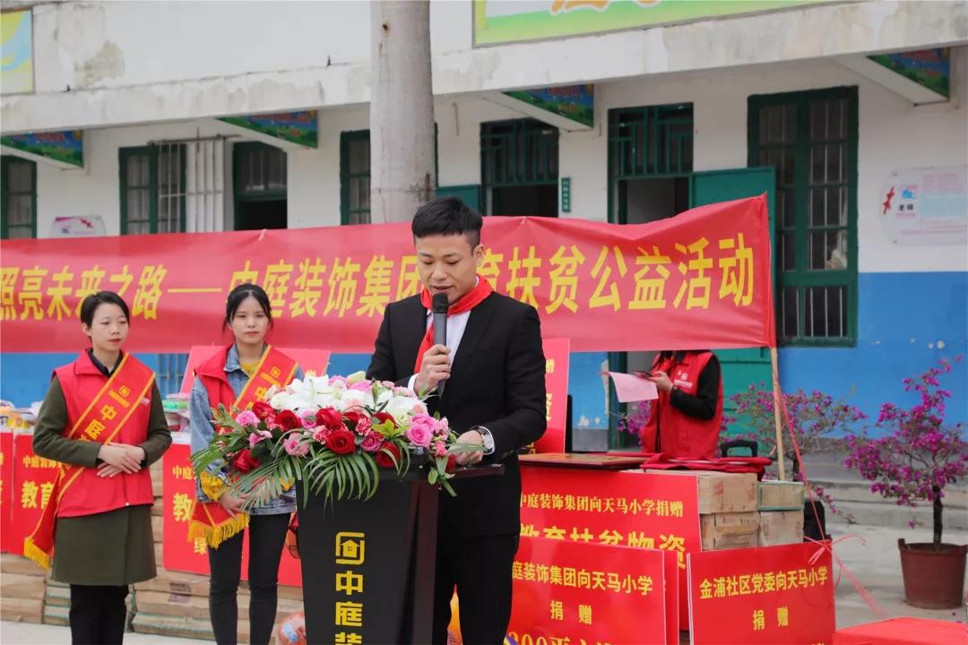 許書記表示,感謝中庭裝飾集團(tuán)組織的教育扶貧公益活動。讓我們相聚在這里,深入貫徹習(xí)近平總書記“扶貧先扶志,扶貧必扶智”的重要指示精神,為天馬小學(xué)教育扶貧貢獻(xiàn)一份力量。