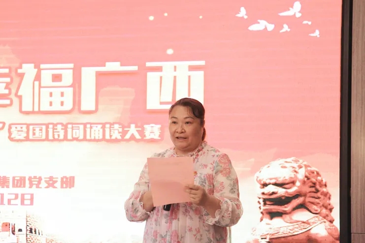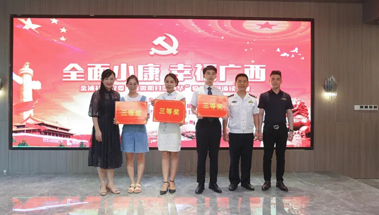 6月12日,在“七一建黨節(jié)”來臨之際,由浦社區(qū)黨委主辦、中庭裝飾集團(tuán)黨支部協(xié)辦的“全面小康 幸福廣西”愛國(guó)詩詞誦讀大賽在集團(tuán)二樓大廳成功舉辦。南寧市稅務(wù)局機(jī)關(guān)黨委、廣西海事局機(jī)關(guān)黨委、招商銀行金浦路支行黨支部、竹溪社區(qū)衛(wèi)生服務(wù)中心黨支部、廣西金孟錳業(yè)有限公司黨支部、同方知網(wǎng)黨支部、中庭裝飾集團(tuán)黨支部、北京外企人力資源黨支部、金浦社區(qū)轄區(qū)各級(jí)黨組織參加了本次活動(dòng)。