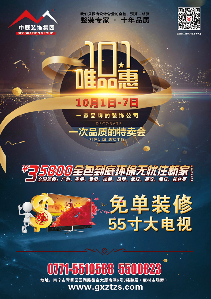 舉國(guó)同慶迎十一,中庭裝飾集團(tuán)推出大型家裝“唯品會(huì)”活動(dòng),一家品牌公司、一次品質(zhì)的特賣(mài)會(huì),只為給您提供更舒心的家裝!