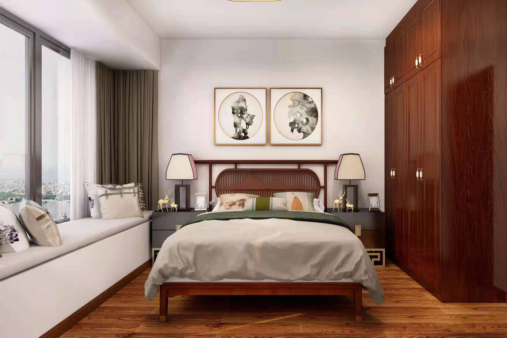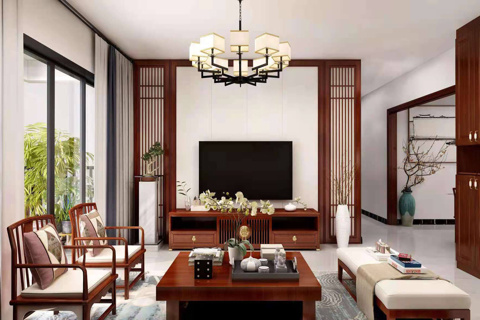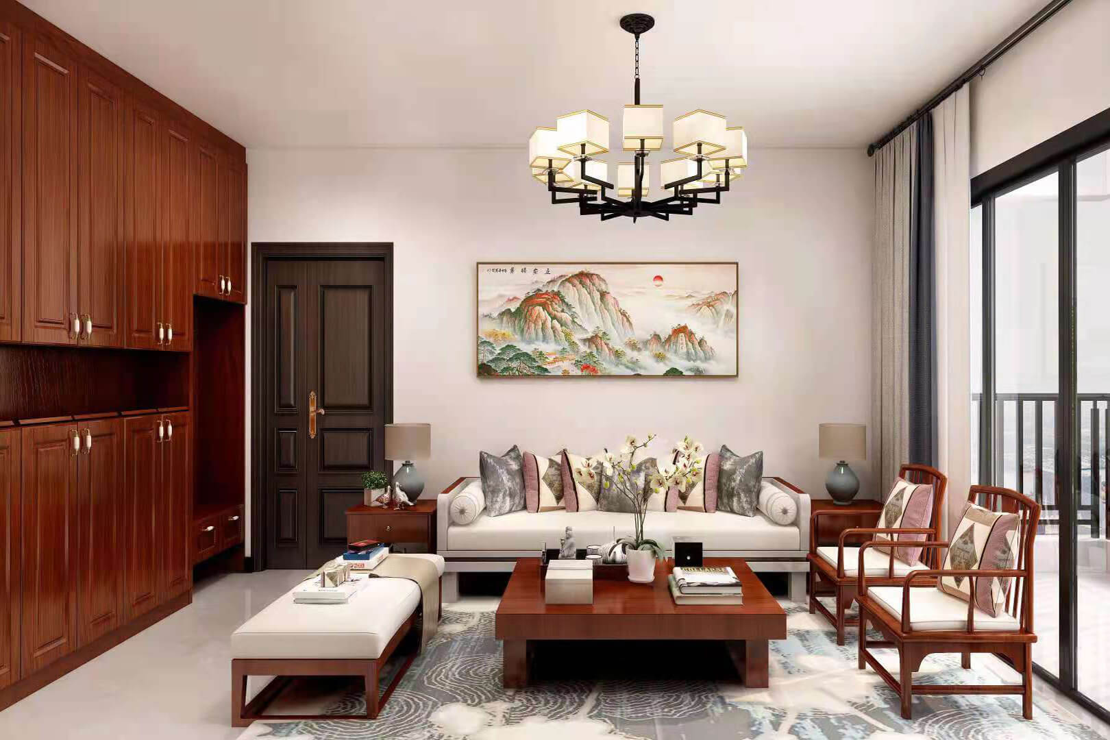 瀏覽量:550房子整體家具以紅木為主。客廳采用白色地磚和留墻面與家具搭配讓顏色看起來更為簡潔,不做裝飾的吊頂讓整體的空間看起來更寬大。房間采用紅木地板與房間家具色彩呼應(yīng),墻面留白用水墨畫裝飾讓房間裝飾更豐富,也讓色彩更多了層次感。