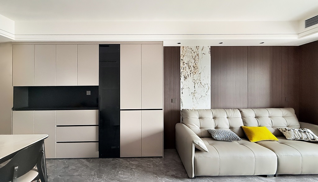 瀏覽量:76整體是簡(jiǎn)約高級(jí)的風(fēng)格,米棕色調(diào)溫柔又大氣,朋友來(lái)都夸很有質(zhì)感!皮質(zhì)沙發(fā)癱著超舒服,亮黃色抱枕一下子讓空間活潑起來(lái)~ 收納做得很隱蔽,家里永遠(yuǎn)整整齊齊。臥室的窗簾一拉,就是專屬的靜謐小天地。在這樣的家里,吃飯、追劇、發(fā)呆,每一刻都好愜意~這大概就是把日子過(guò)成詩(shī)的感覺(jué)吧~