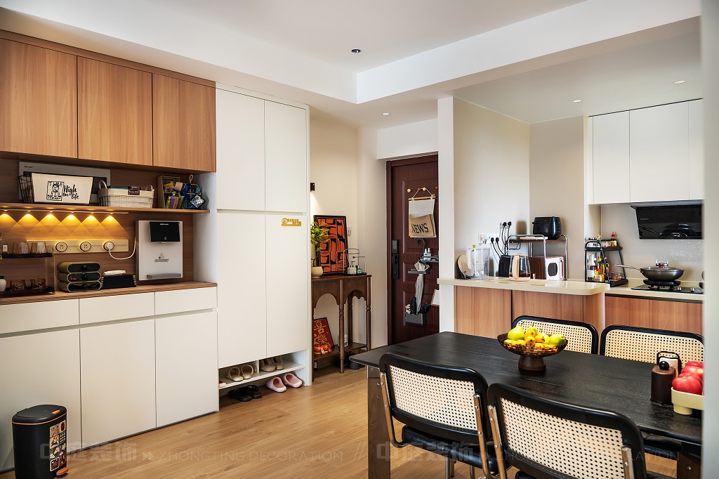 瀏覽量:79每一處細(xì)節(jié),都是他們對“把日子過成詩,讓家裝滿故事”的詮釋。以原木的溫潤、白調(diào)的清爽為基底,在玄關(guān)處嵌入復(fù)古邊幾,擺上藝術(shù)感的裝飾畫,仿佛時(shí)光在此打了個(gè)溫柔的結(jié);餐廚區(qū)的咖啡角裝滿對生活的小確幸,與開放式廚房的煙火氣交融,是晨起的咖啡香與深夜的飯菜香的浪漫邂逅;客廳里,黑色皮沙發(fā)搭配復(fù)古風(fēng)抱枕,一旁的藝術(shù)綠植蜿蜒生長,就像主人對生活的熱愛肆意又熱烈。