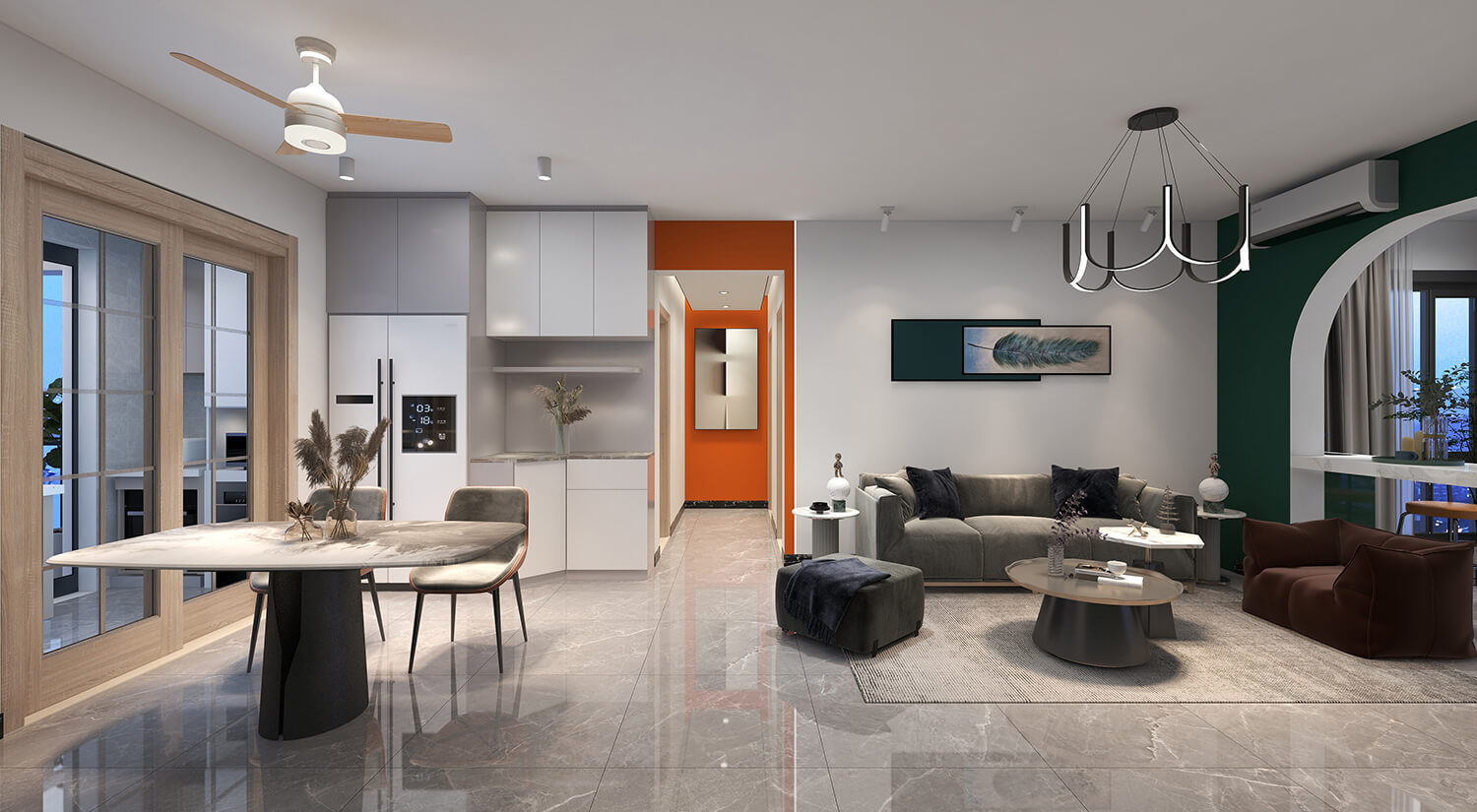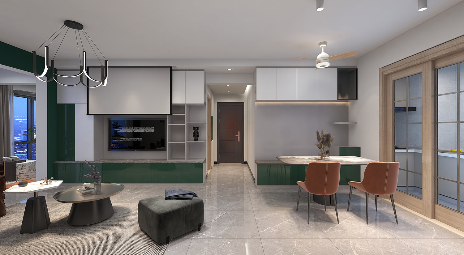 瀏覽量:220本案例戶型為:3房1廳1衛(wèi),總面積125㎡。這是一套輕奢風(fēng)格的房子。設(shè)計師采用開放式布局,將客廳、餐廳融為一體。這樣不僅增加了家庭成員的互動和交流,也可以讓房間看起來更加寬敞。輕奢金屬飾品與布藝沙發(fā)的結(jié)合,使得畫面具有時尚感又不乏溫馨。