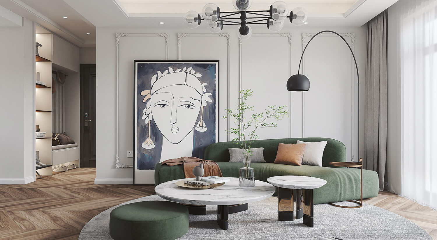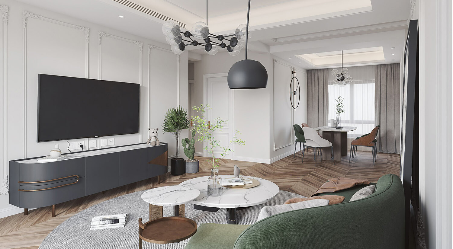 105㎡的簡約灰空間,業(yè)主希望獲得一種舒適,舒適和實用的內(nèi)飾,并采用一種平靜的配色方案。在家具和裝飾中使用柔和色彩來強調(diào)灰色,還有大量開放空間,可以合理有效地利用該區(qū)域,光線充足。