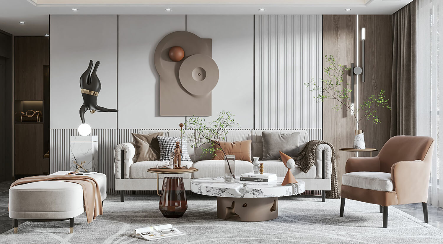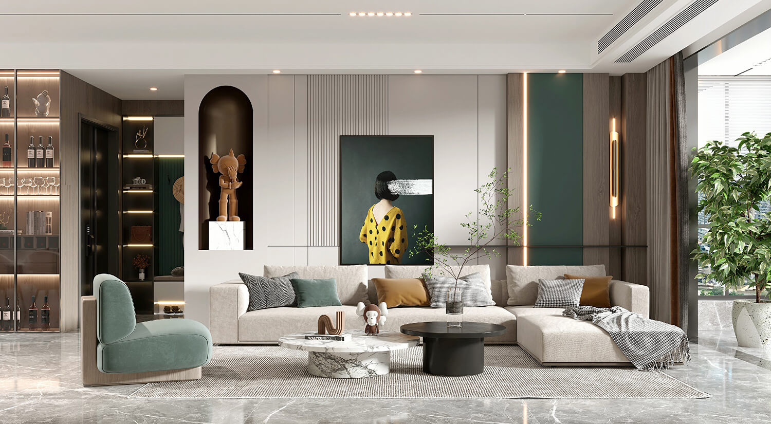 瀏覽量:550顏色搭配也是現(xiàn)代輕奢風(fēng)格的重要部分。通常使用大面積的中性色調(diào),如白色、灰色、米色等,這些顏色可以使空間更加明亮、舒適。同時,也會加入少量的金屬色調(diào)和珠光色,如金色、銀色、香檳色等,讓空間更具奢華感。