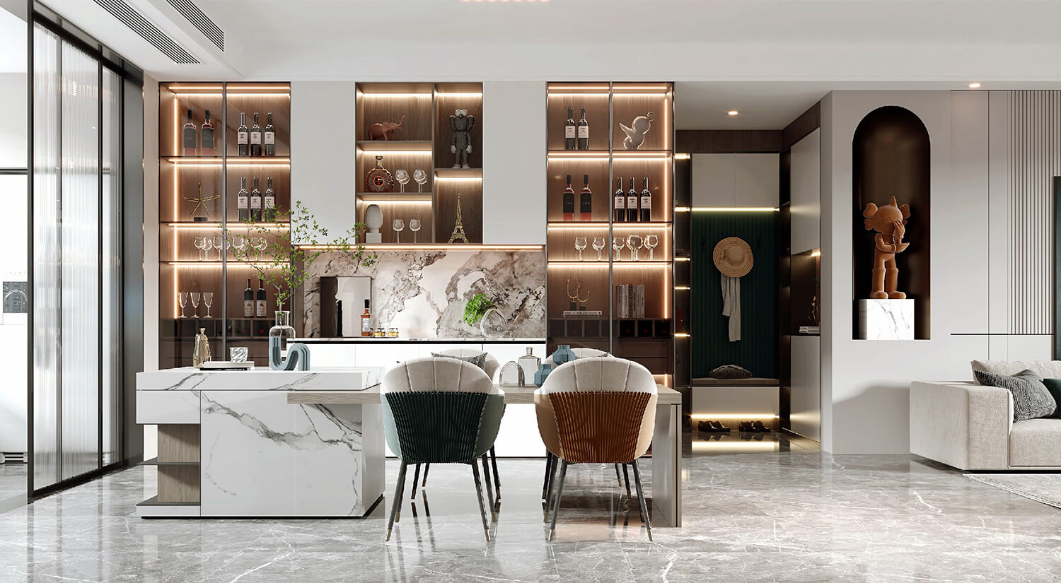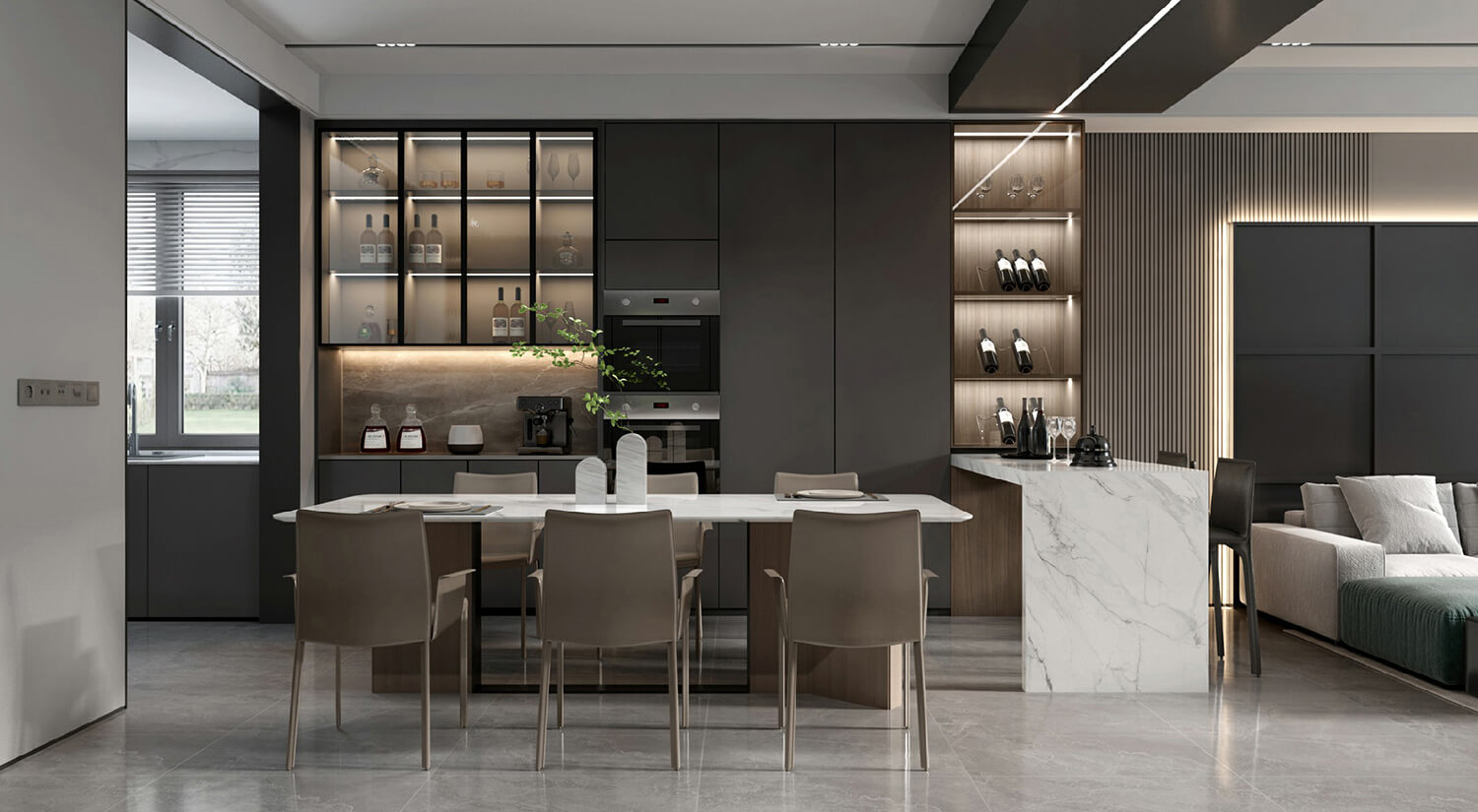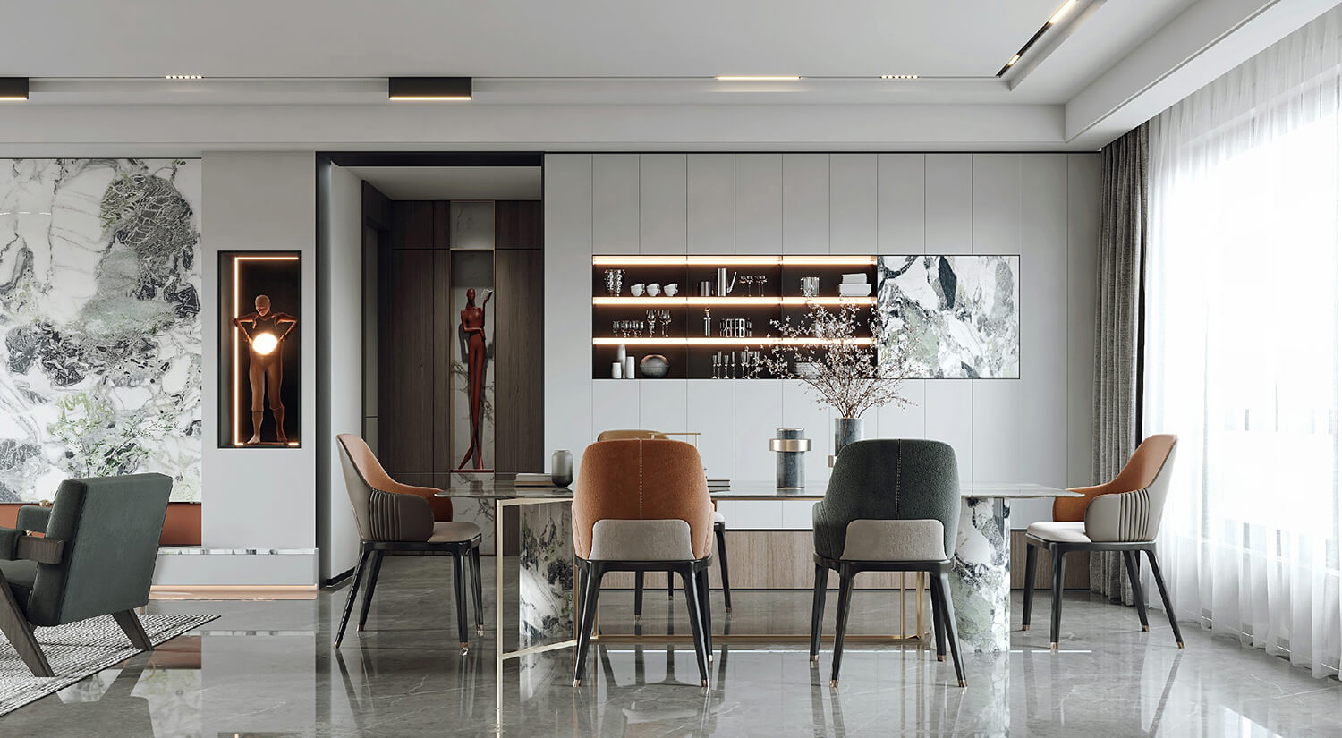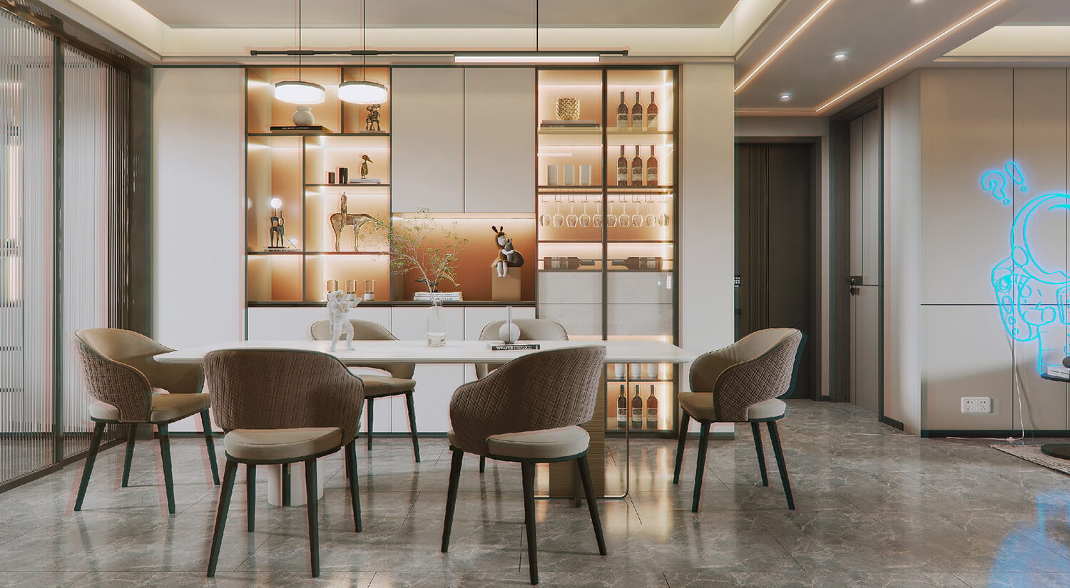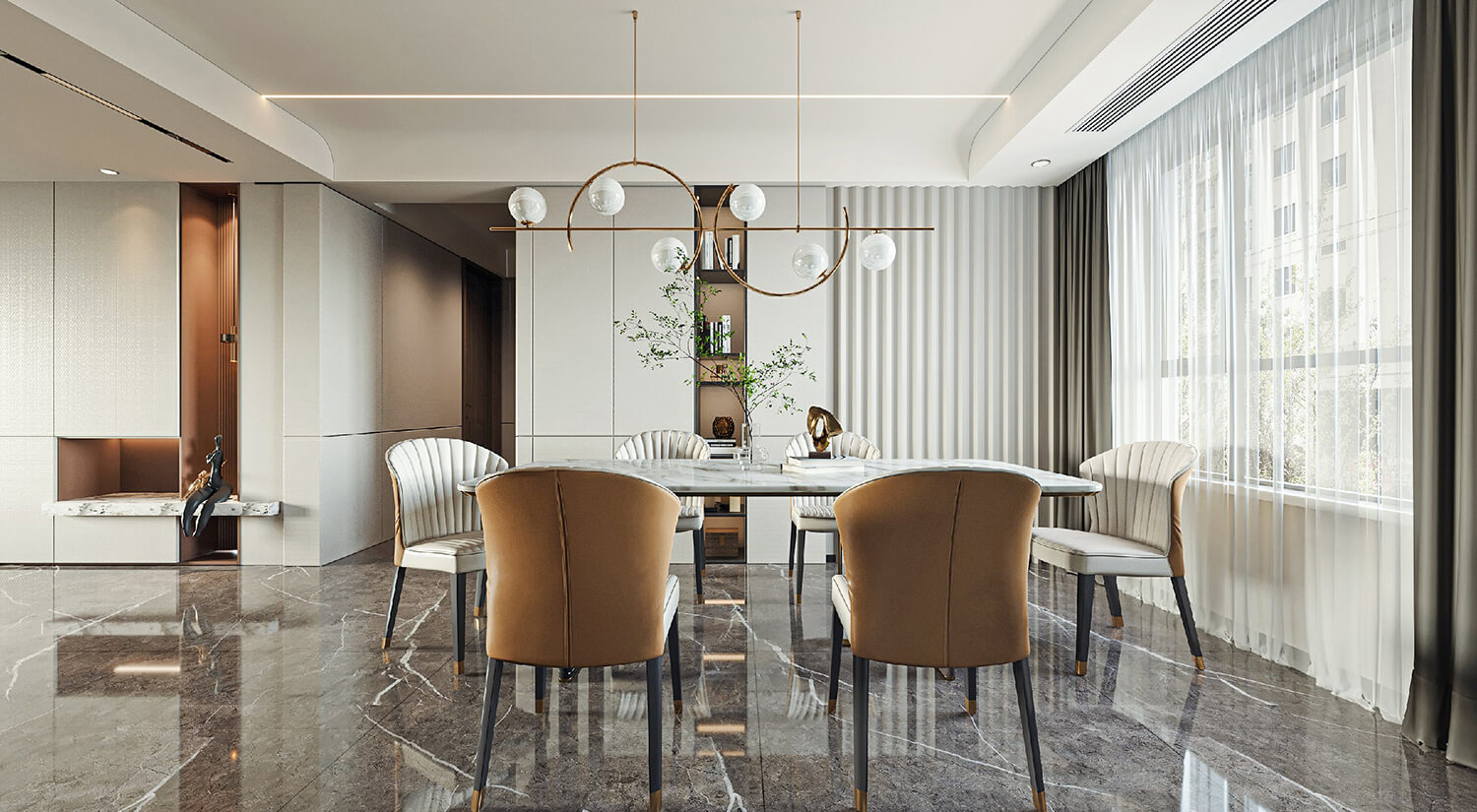 瀏覽量:518在現(xiàn)代輕奢風(fēng)格的裝修中,還需要考慮空間布局和功能性的結(jié)合。一般會(huì)將客廳、餐廳打通,形成開(kāi)放式的空間,增加通透性和流動(dòng)感。暖色線燈烘托家的溫馨氛圍,享受與家人一起用餐的美好時(shí)光。