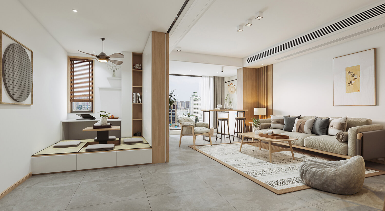 瀏覽量:457天然的材質(zhì),簡(jiǎn)約的線條,使居住環(huán)境舒適溫馨。日式風(fēng)格比較注重空間的分隔以及它的流動(dòng),空間感很明朗。